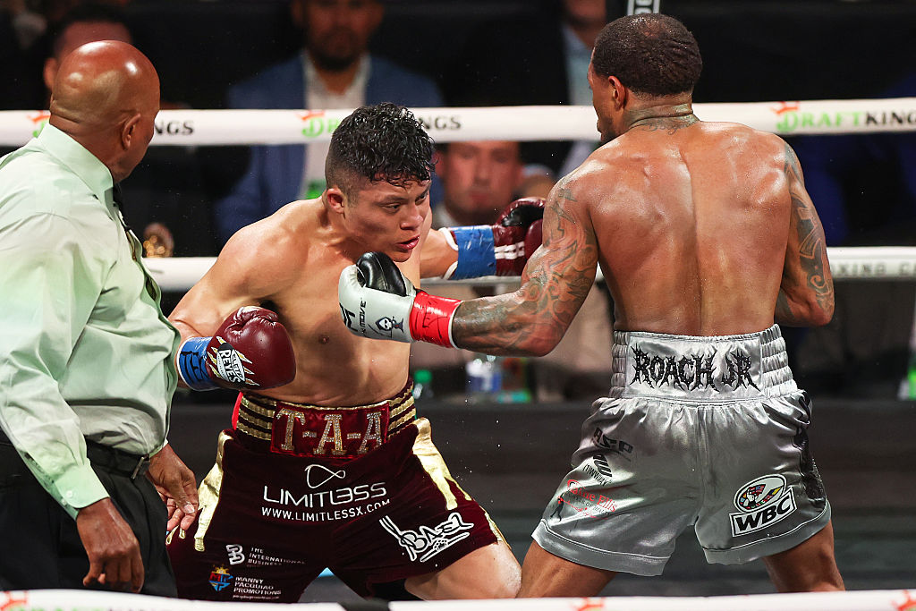 SAN ANTONIO, TEXAS - DECEMBER 6: (L-R) Isaac Pitbull Cruz and Lamont Roach battle during the Interim WBC Super Lightweight Title fight bout at Frost Bank Center on December 6, 2025 in San Antonio, Texas. (Photo by Omar Vega/Getty Images)