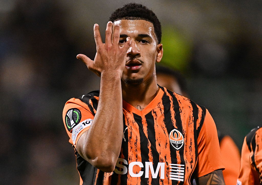 Dublin , Ireland - 27 November 2025; Kauã Elias of Shakhtar celebrates after scoring his side's first goal during the UEFA Conference League 2025/26 league phase match between Shamrock Rovers and Shakhtar at Tallaght Stadium in Dublin. (Photo By Seb Daly/Sportsfile via Getty Images)