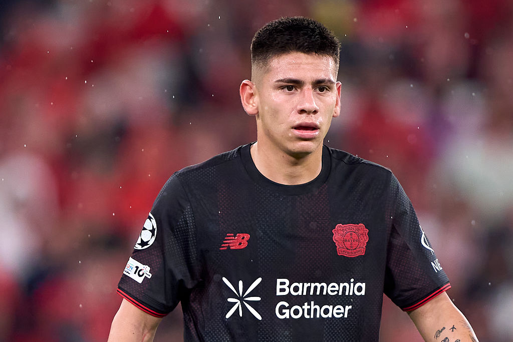 LISBON, PORTUGAL - NOVEMBER 05: Claudio Echeverri of Bayer 04 Leverkusen looks on during the UEFA Champions League 2025/26 League Phase MD4 match between SL Benfica and Bayer 04 Leverkusen at Estadio do Sport Lisboa e Benfica on November 05, 2025 in Lisbon, Portugal. (Photo by Jose Manuel Alvarez Rey/Getty Images)