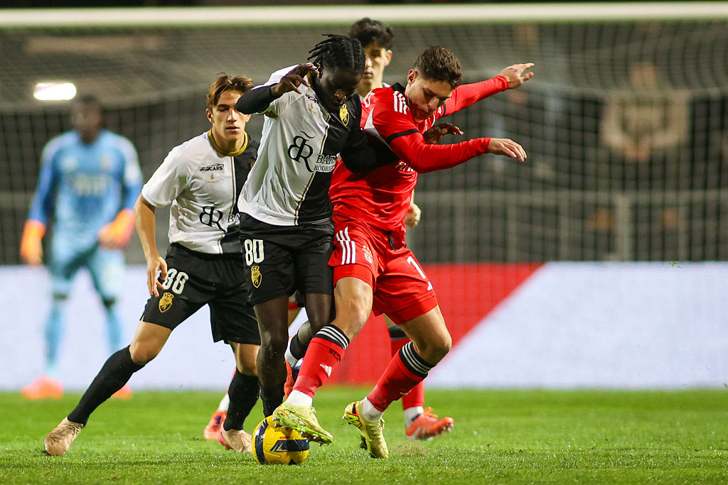 Faro, Portugal - December 17: Farense's Assane Ndiaye and Benfica's Georgiy Sudakov battling for the ball during the Taca de Portugal match between SC Farense and SL Benfica at Estadio Sao Luis on December 17, 2025 in Faro, Portugal. (Photo by Torbjorn Tande/DeFodi Images/DeFodi via Getty Images)