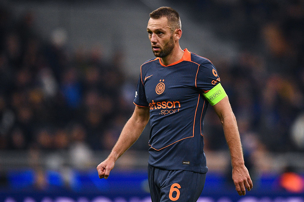MILANO, ITALY - NOVEMBER 5: Stefan de Vrij of FC Internazionale Milano looks on during the UEFA Champions League 2025/26 League Phase MD4 match between FC Internazionale Milano and FC Kairat Almaty at Stadio San Siro on November 5, 2025 in Milano, Italy. (Photo by Alberto Gandolfo/BSR Agency/Getty Images)