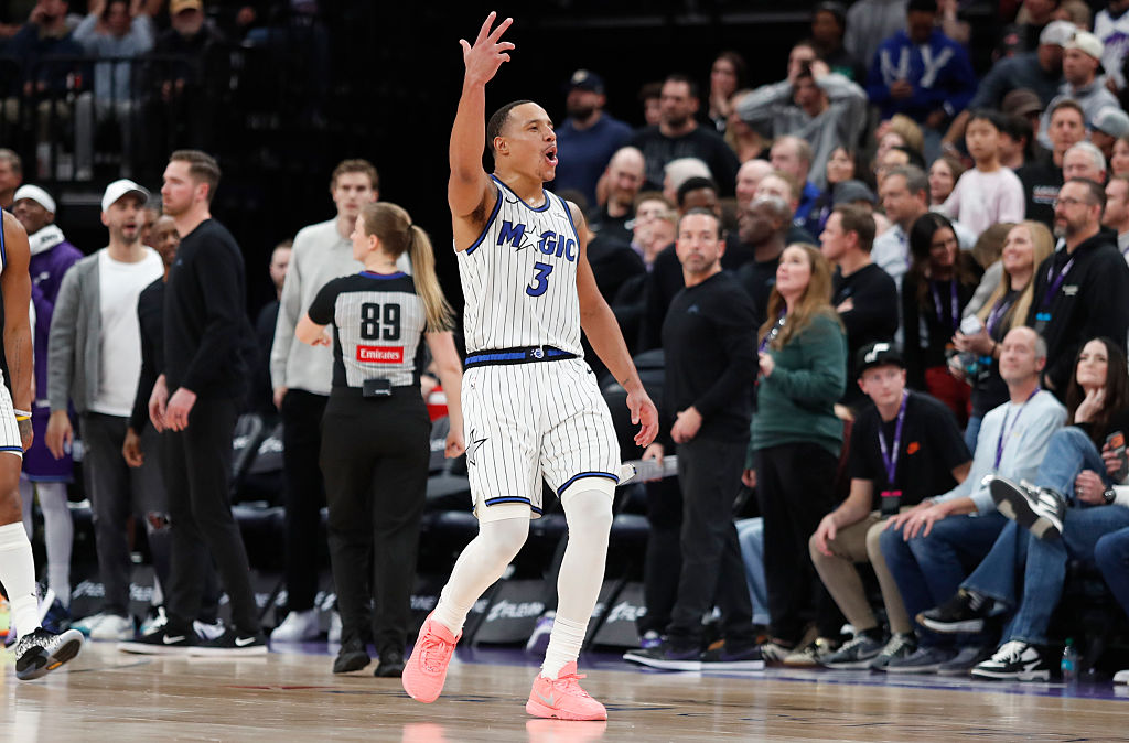 SALT LAKE CITY, UTAH - DECEMBER 20: Desmond Bane #3 of the Orlando Magic reacts after scoring the game-winning basket during overtime of their game against the Utah Jazz at the Delta Center on December 20, 2025 in Salt Lake City, Utah. NOTE TO USER: User expressly acknowledges and agrees that, by downloading and or using this photograph, User is consenting to the terms and conditions of the Getty Images License Agreement.(Photo by Chris Gardner/Getty Images)