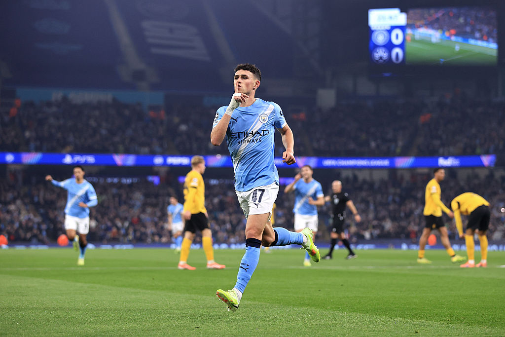 MANCHESTER, ENGLAND - NOVEMBER 5: Phil Foden of Manchester City celebrates scoring their 1st goal during the UEFA Champions League 2025/26 League Phase MD4 match between Manchester City and Borussia Dortmund at City of Manchester Stadium on November 5, 2025 in Manchester, England. (Photo by Simon Stacpoole/Offside/Offside via Getty Images) https://sportarena.ua/uk/footboll/apl/nyukasl-manchester-siti-video-oglyad-matchu-za-13-2/