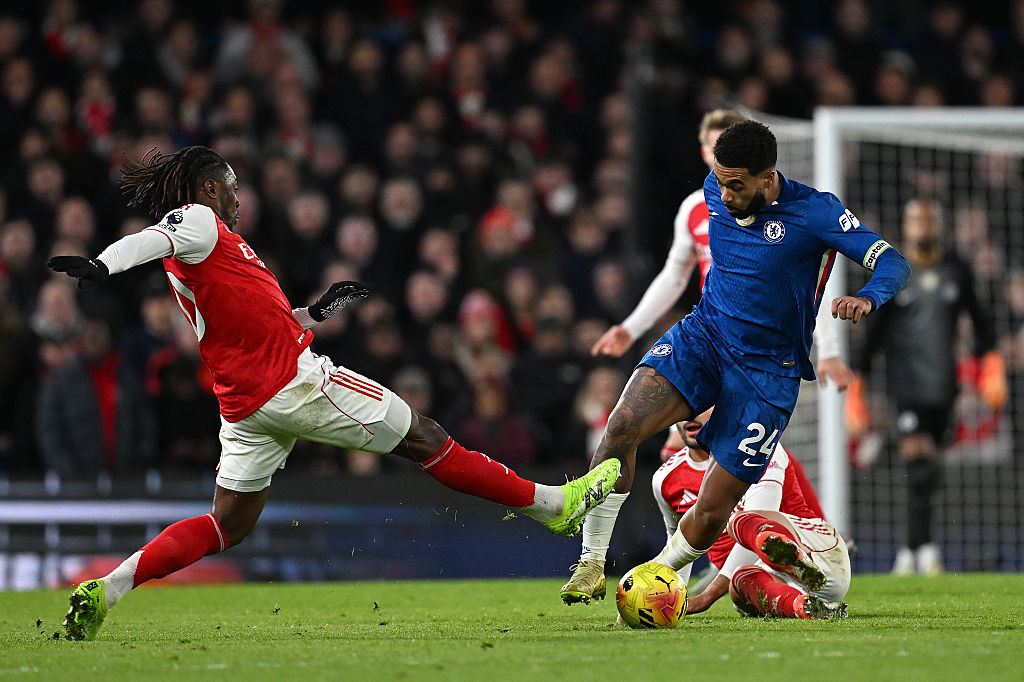 LONDON, ENGLAND - NOVEMBER 30: Reece James of Chelsea is challenged by Eberechi Eze of Arsenal during the Premier League match between Chelsea and Arsenal at Stamford Bridge on November 30, 2025 in London, England. (Photo by Darren Walsh/Chelsea FC via Getty Images) https://sportarena.ua/uk/footboll/apl/chelsi-arsenal-video-oglyad-matchu-za-14-sichnya/