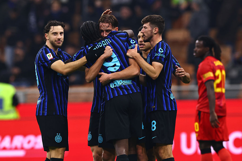 MILAN, ITALY - DECEMBER 03: Francesco Pio Esposito of FC Internazionale celebrates after scoring his team's second goal during the Coppa Italia match between FC Internazionale and Venezia FC at San Siro Stadium on December 03, 2025 in Milan, Italy. (Photo by Luca Amedeo Bizzarri/Getty Images) https://sportarena.ua/uk/footboll/uk-seriya-a/inter-lechche-video-oglyad-matchu-za-14-sichnya/